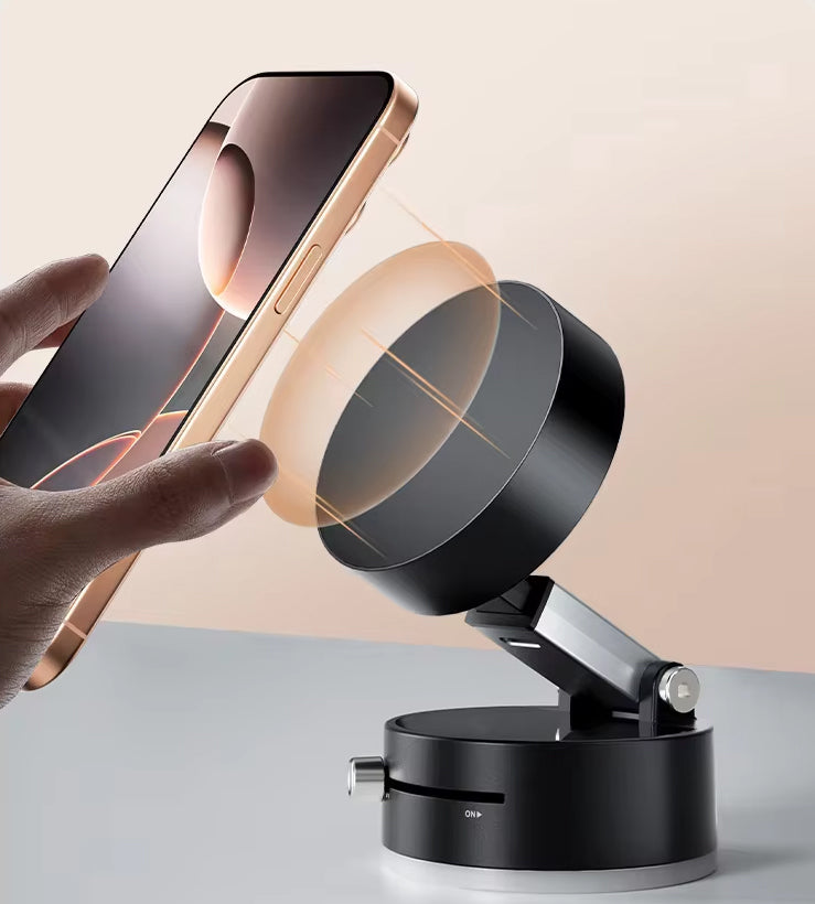 ضع الموبايل على الحامل وستلتصق القطعة المغناطيسية بقوة